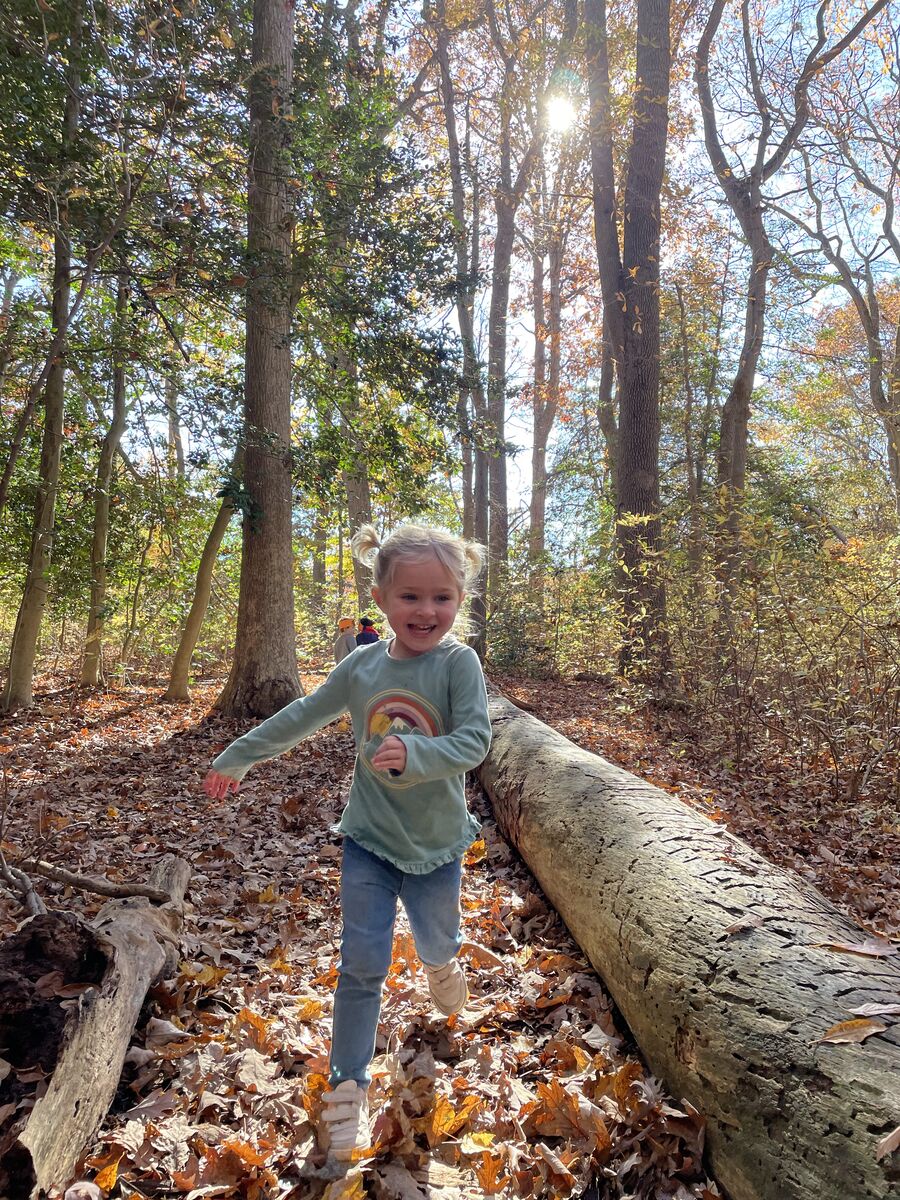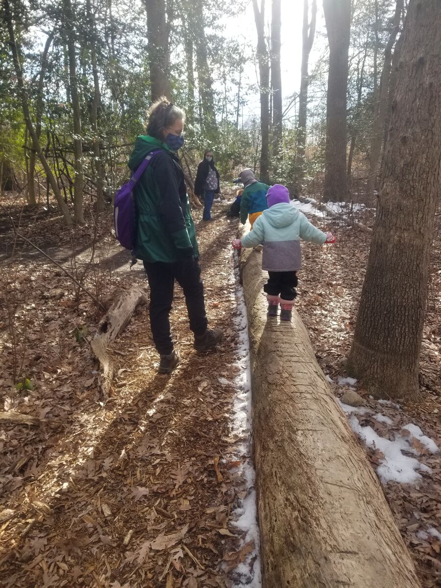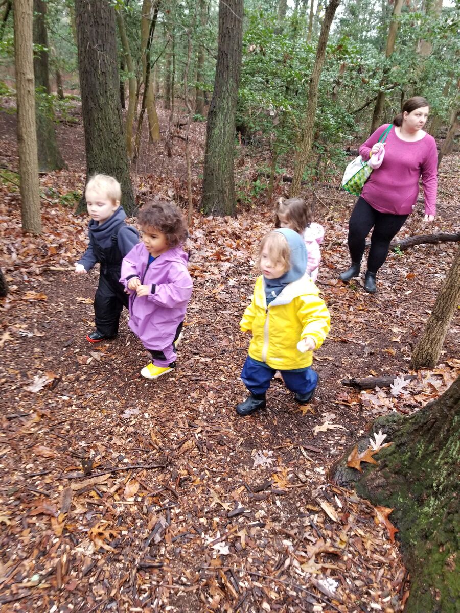 Our two year old class out for an adventure on the trails.