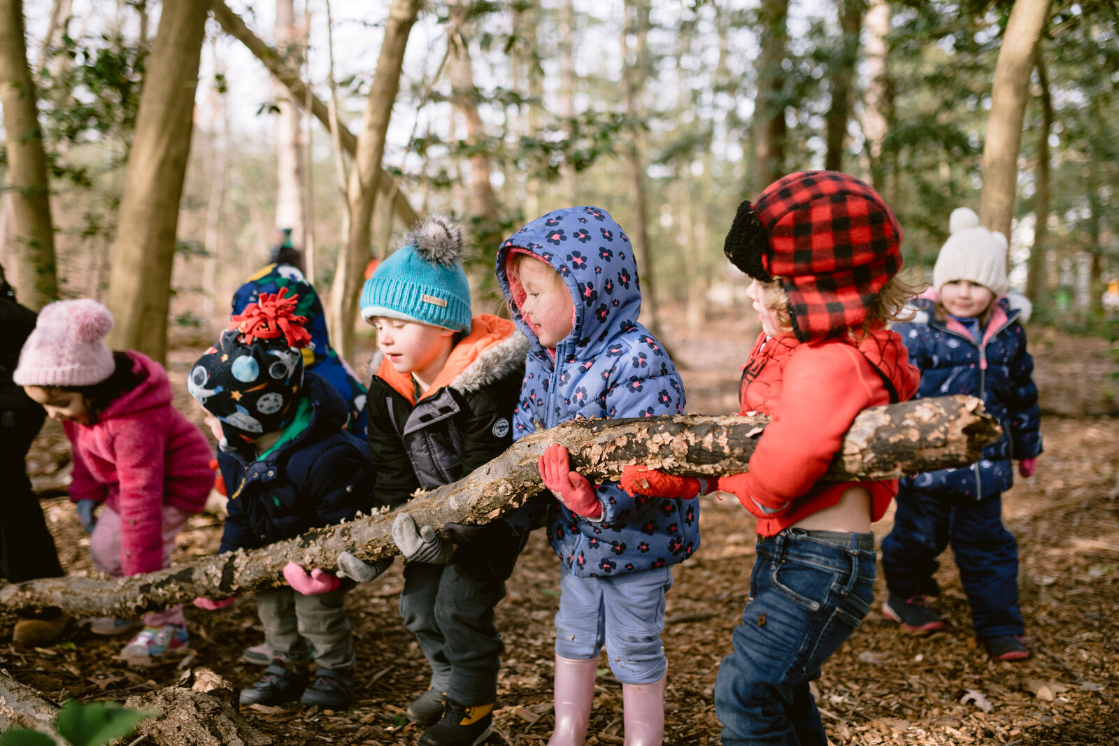 Over the last few years we have built and continually expanded our forest trails. They include many different areas for activities and play like running loops and story circles. They also have adapted natural features like a fallen tree for balancing, or features made from natural materials like stumps placed for walking or sitting.