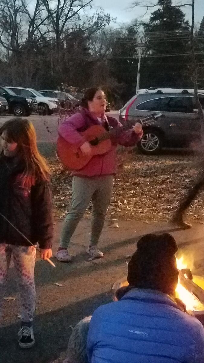 One of our parents leads a campfire sing along.
