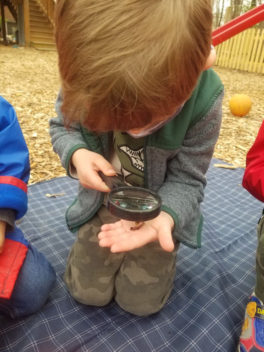 Our 4 year old Pre-K students select their own "sit spot" during the year. Classes return to these spots throughout the year to journal what they see and hear around them, and to observe how the spot changes over time and through the seasons.