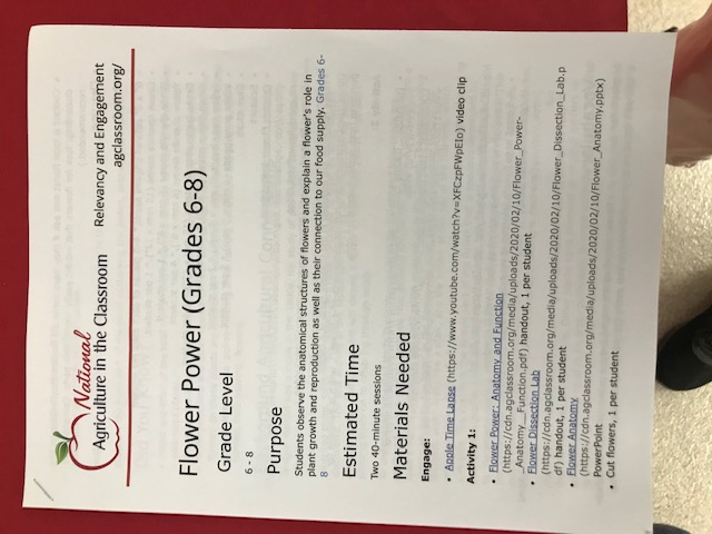 Students participating in an Ag Day activity to build a flower while discovering functions of flower parts and the importance of pollination.