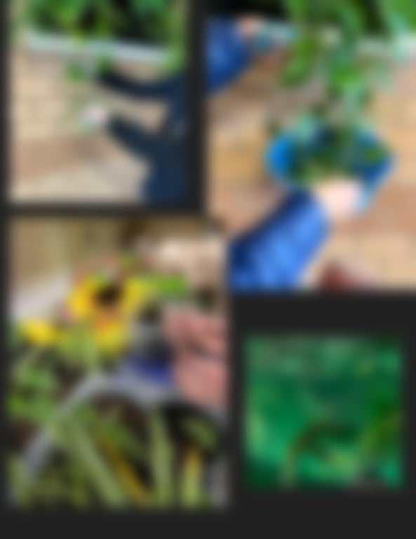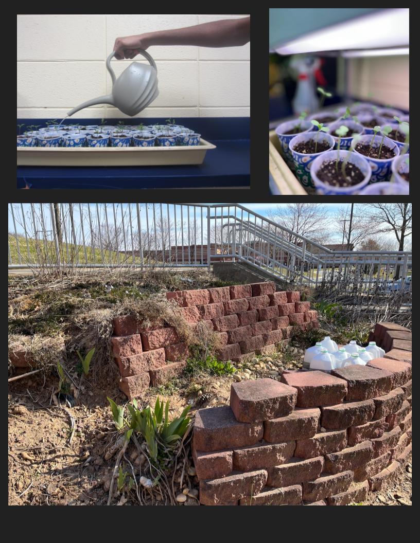 A student waters our marigold seedlings (top left)