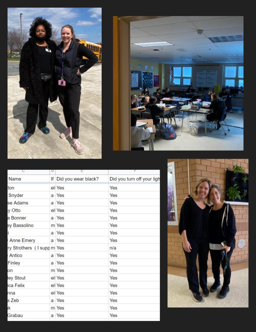 Administration dressed in all black for Earth Hour Spirit Day 2022 (top left)