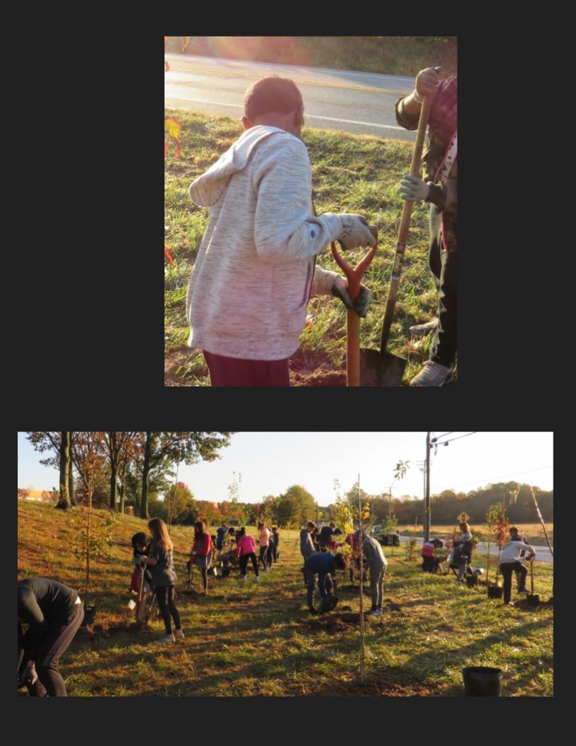 7th grade students participated in the Students Branching Out program to plant trees on school property and create reforestation zones.