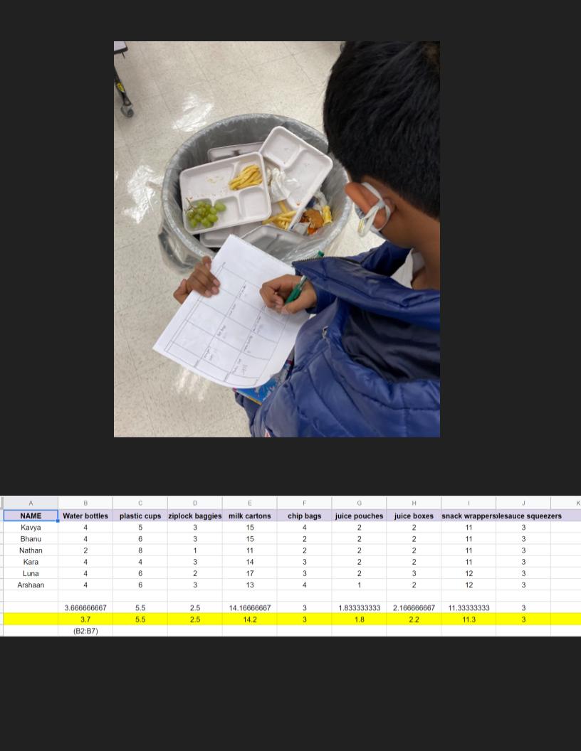 A student records the type of trash being thrown away. (top)