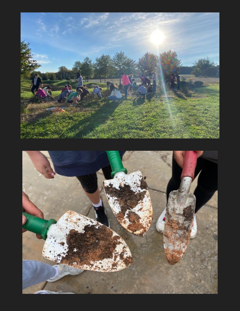After the lessons, student went out to school gardens to weed and plant plants purchased with a grant from Audubon Society of Central Maryland.
