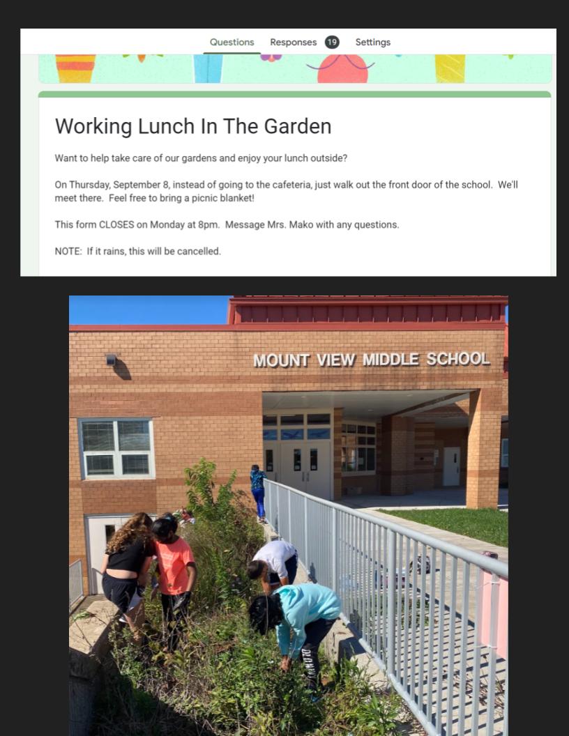 A screenshot of the form for a gardening day in fall of 2022 that shows 19 students signed up to garden on that day. (top)