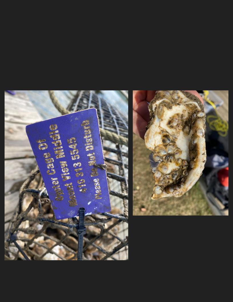 We partner with Annapolis Maritime Museum to take care of 4 cages of oyster spat hanging from their docks.